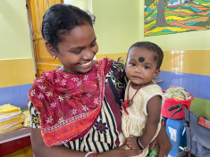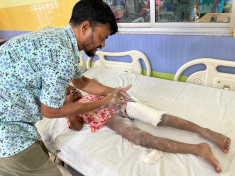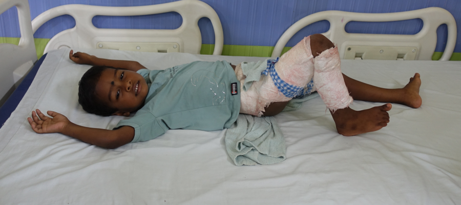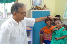 Ein 2-jähriges Mädchen mit einem Gehirntumor, der bereits die Schädeldecke durchbrochen hatte und ein Auge nach vorne vorwölbte, wurde zu uns gebracht. Die Eltern hatten in Kalkutta kein Krankenhaus finden können, das dieses Kind behandeln kann. Der Vater hat sein Toto verkauft, um all die Kosten zu bezahlen. So kann er nicht mehr als Fahrer sein Einkommen verdienen und muss als Feldarbeiter sich verdingen.