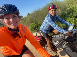 Ein schönes Beispiel aktiv zu sein für Indien ist Linda Deierling, hier im Bild zu sehen, die mit dem Fahrrad von Lissabon nach Frankfurt radelte, teils über den Jakobsweg, und dabei mit Bildern und Aufsteller in ihrer Kirchengemeinde St. Josef in Obertshausen zu Hause berichtete, um Spenden zu sammeln für unser NutriMix Ernährungsprogramm.